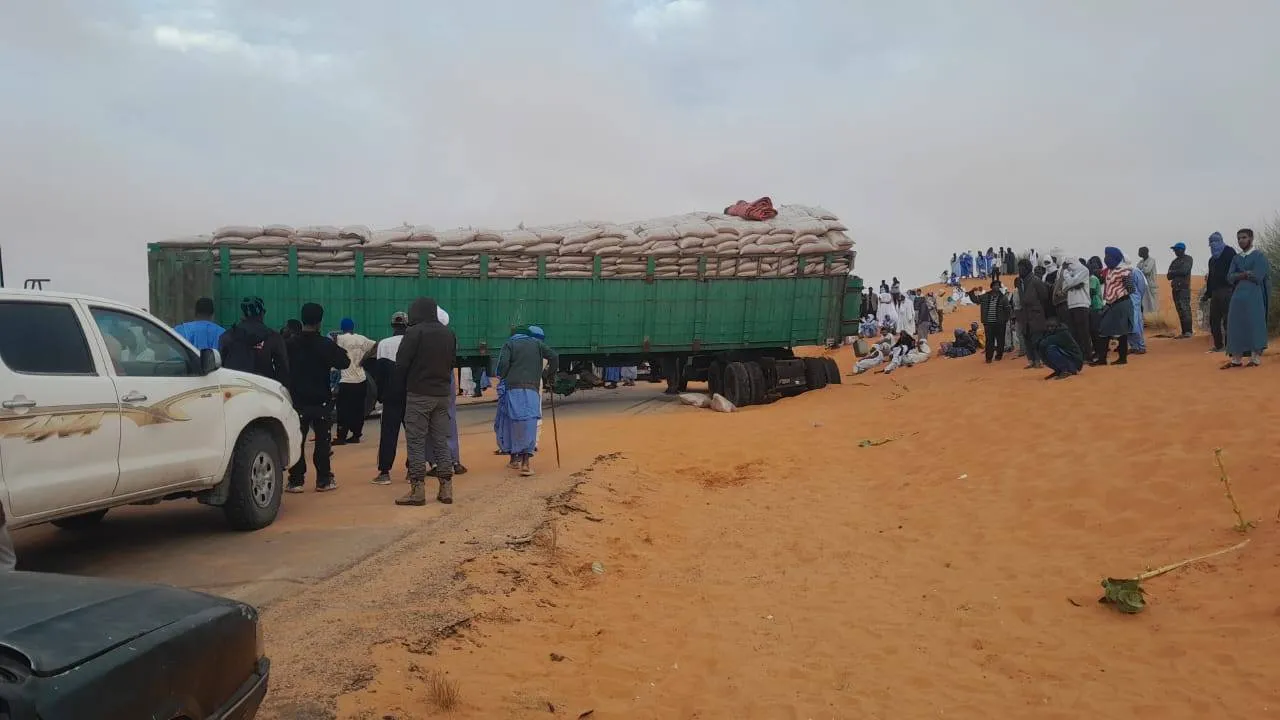 صورة الشاحنة التي أغلقت طريق الأمل في الاتجاهين لعدة ساعات بعد سقوطها