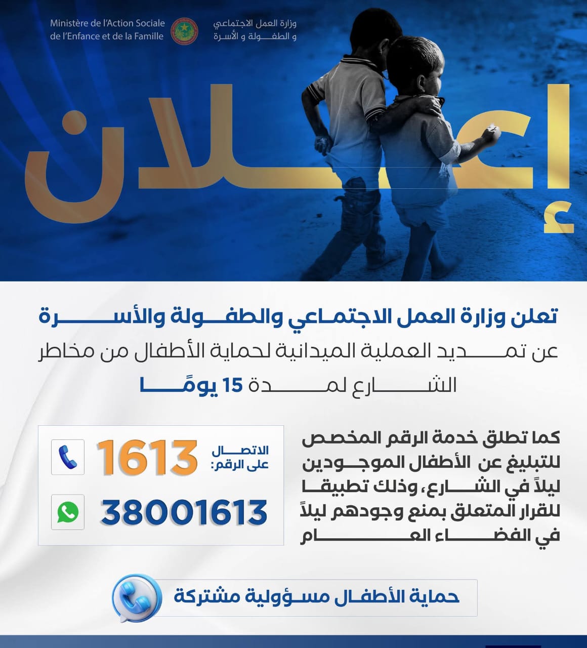 الاعلان عن تمديد فترة الحملة الخاصة بحماية الاطفال