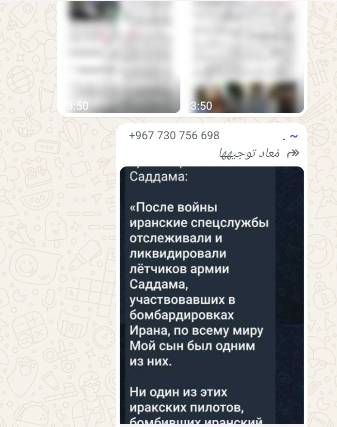 وعن تفسيره لتلك العمليات والجهات التي قد تقف وراء هذه الاغتيالات، أردف الضابط العراقي: "في هذه الحالة لم يكن بالإمكان سوى إلقاء اللوم على إيران لأن أكثر طلعات الطيارين العراقيين كانت ضد إيران حينها".