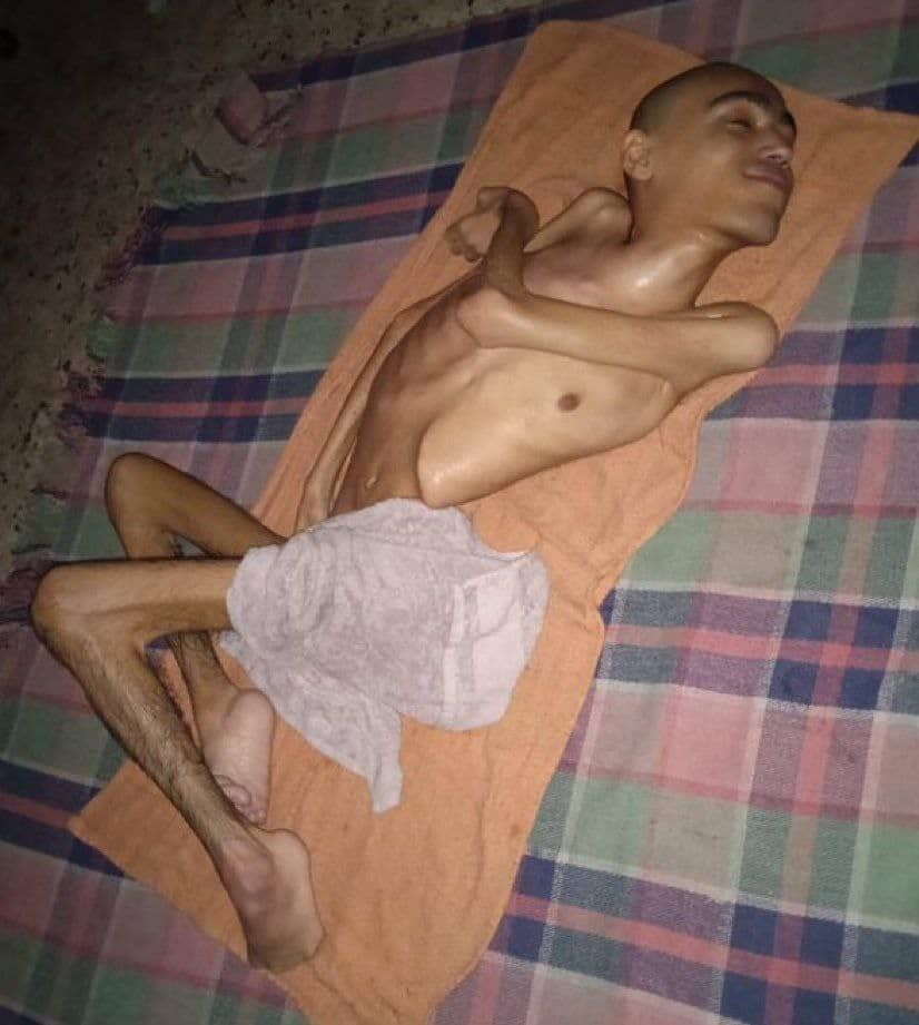 وهذا جسد شاب في غزة انهار تماماً، حتى أصبح هيكلاً عظمياً بسبب الجوع.