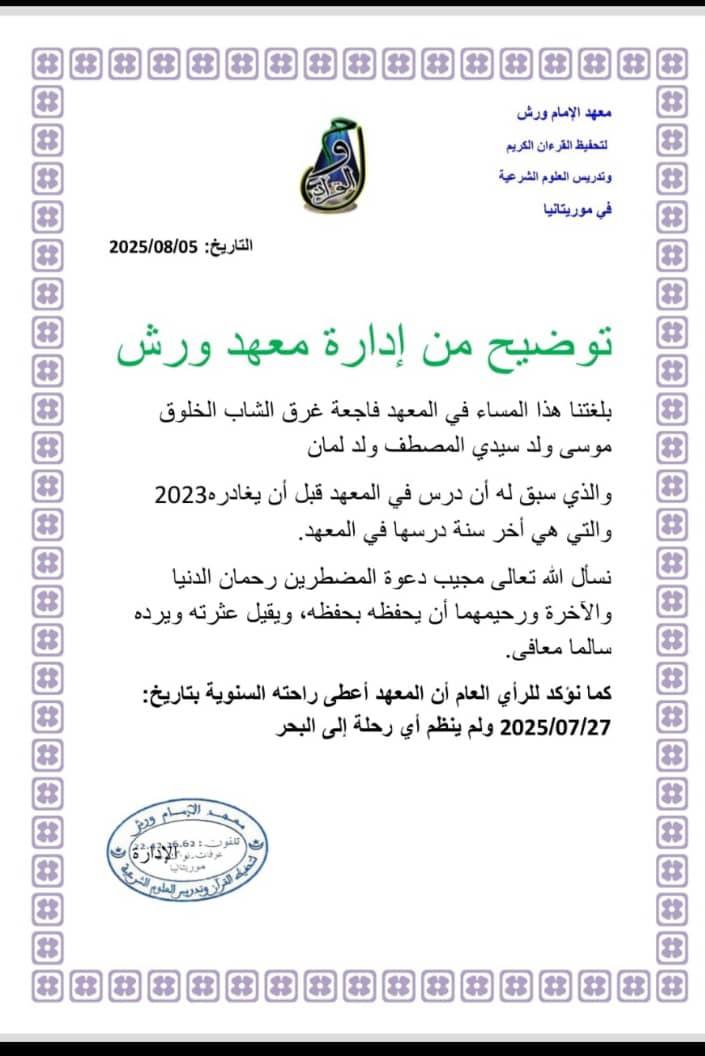 بيان معهد ورش صدر قبل التأكد من وفاة الطالب