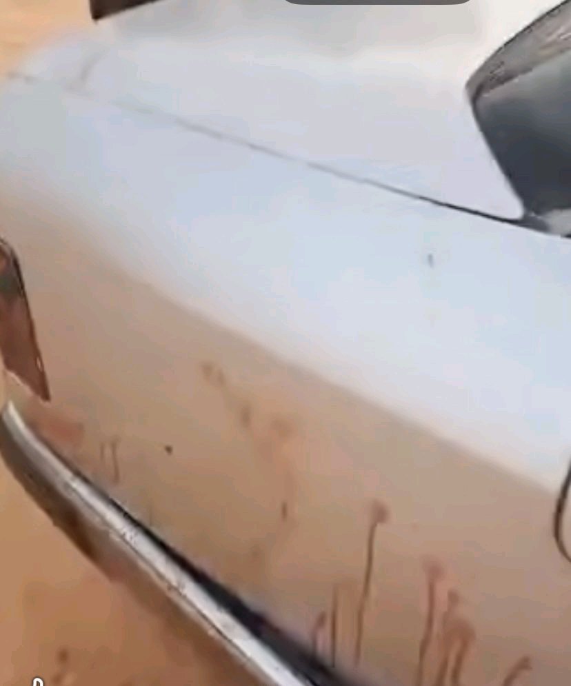 وتظهر الدماء على السيارة من الخارج، ما يعني أن الحادث أو المعركة التي سببت الدماء وقعت خارج السيارة وليس بداخلها.