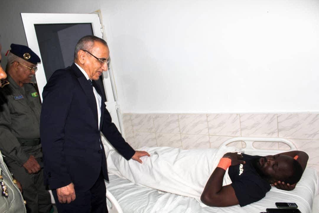 وزار وزير الداخلية محمد أحمد ولد محمد الأمين وقائد الحرس الفريق إبراهيم فال ولد الشيباني الحرسيين الجرحى في المستشفى العسكري بالعاصمة نواكشوط، حيث يخضعون للعلاج."