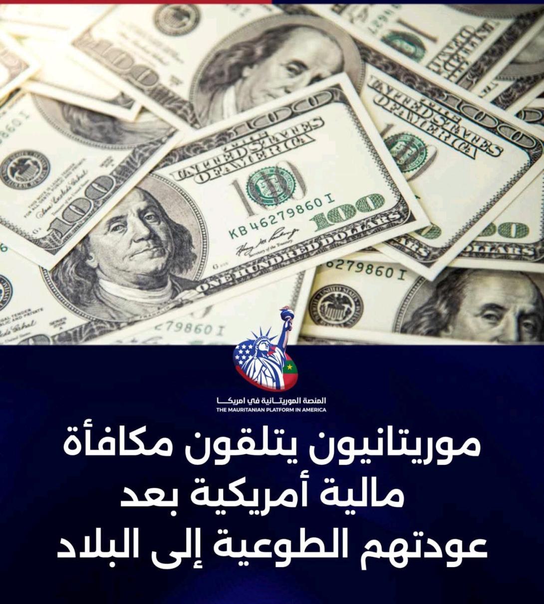 وبحسب المعلومات المتوفرة، تبلغ قيمة هذه المكافأة 1000 دولار أمريكي لكل شخص، وقد تم صرفها بعد نحو شهر من وصول المعنيين إلى الأراضي الموريتانية، ضمن إطار برامج العودة الطوعية التي تعتمدها السلطات الأمريكية في قضايا الهجرة.