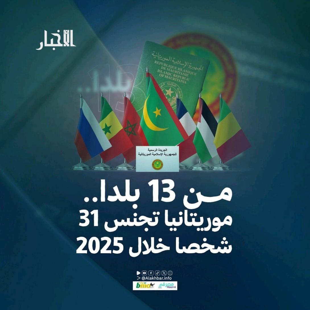 منحت موريتانيا جنسيتها لـ31 شخصا خلال العام 2025، في رقم قياسي مقارنة مع الأعوام السابقة، حيث كان عدد الحاصلين على الجنسية الموريتانية لا يتجاوز أصابع اليد الواحدة.