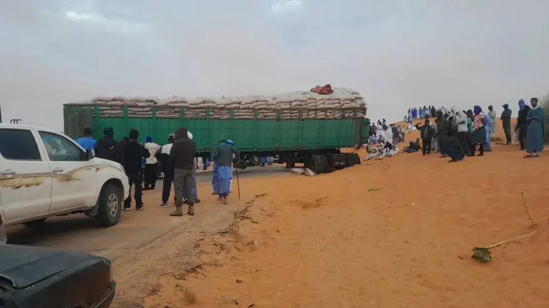 "أدى سقوط شاحنة محملة بالبضائع على بعد نحو 100 كم من العاصمة نواكشوط على طريق الأمل إلى إغلاق الطريق بشكل كامل، أمام حركة السيارات الصغيرة والباصات والشاحنات.