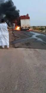 اشتعلت النيران في شاحنة زوال اليوم على طريق الأمل بين أغشوركيت وألاك (منطقة الربينة).